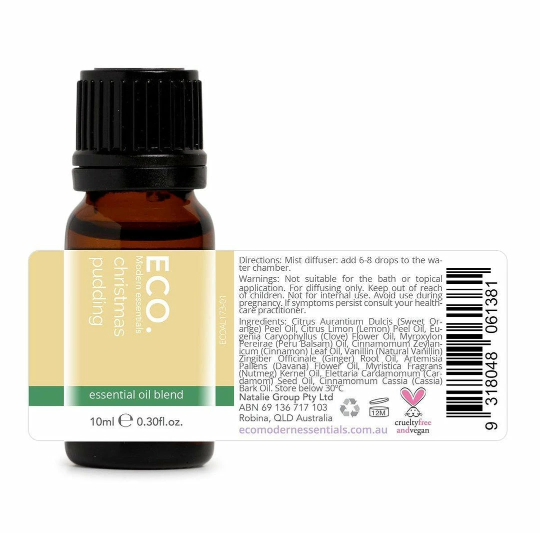 Christmas Pudding Essential Oil Blend: Citrus aurantium dulcis (Sweet Orange) peel oil, Citrus limon (Lemon) peel oil, Eugenia caryophylius (Clove) flower oil, Myroxylon pereirae (Peru Balsam) oil, Cinnamomum zeylanicum (Cinnamon) leaf oil, Vanillin (Natural Vanillin), Zingiber officinale.