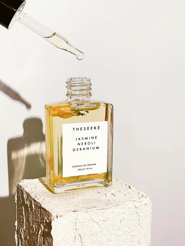 Theseeke essential oil perfumes are formulated with precious essential oils, botanicals & organic apricot kernel oil. Essential oil perfumes will react with the the chemistry of your body to create a truly unique & intimate personal fragrance. Because of the heat generated by your body essential oil perfumes will last differently on each individual, apply to pulse points as you desire, take a moment to breathe deeply & enjoy the beautiful scent of these mood lifting precious oils. The bottle is perfectly sized for you to carry with you throughout the day should you wish to reapply. If you prefer a longer lasting scent, apply your fragrance to the small cloth provided with your perfume, it can be placed in a pocket, or tucked in to an undergarment.