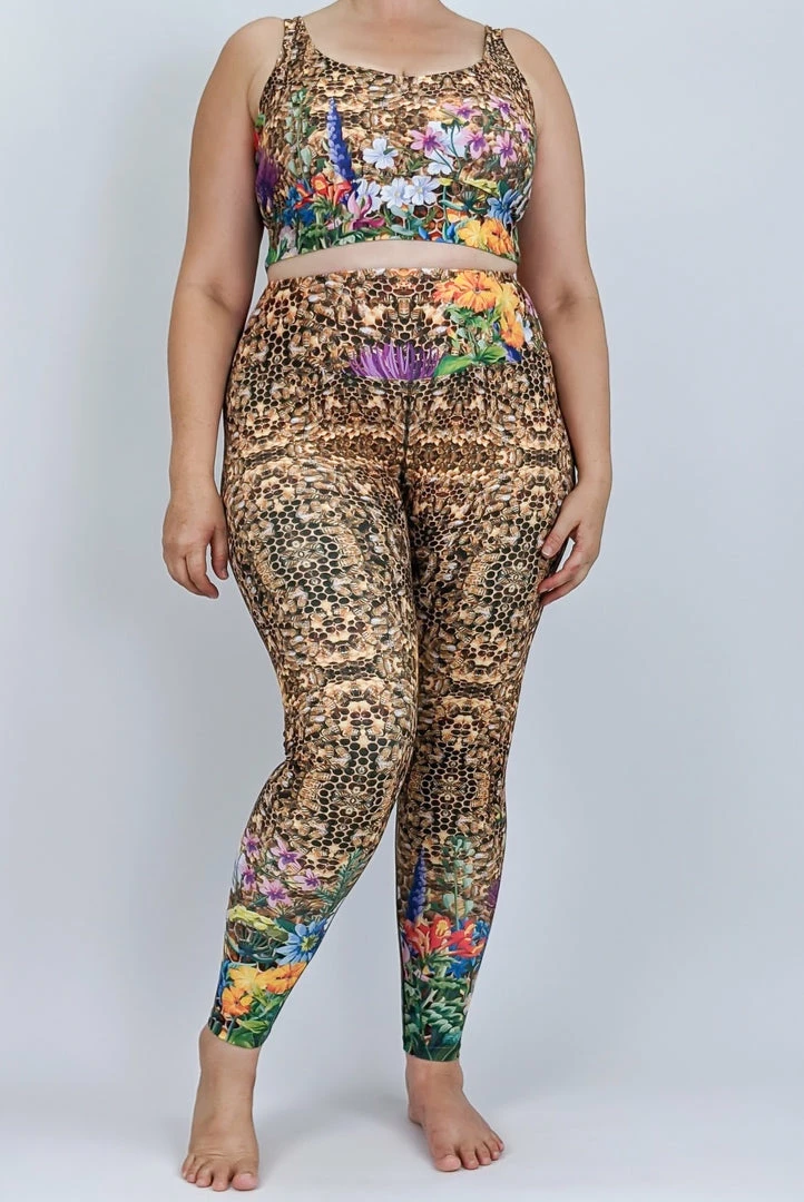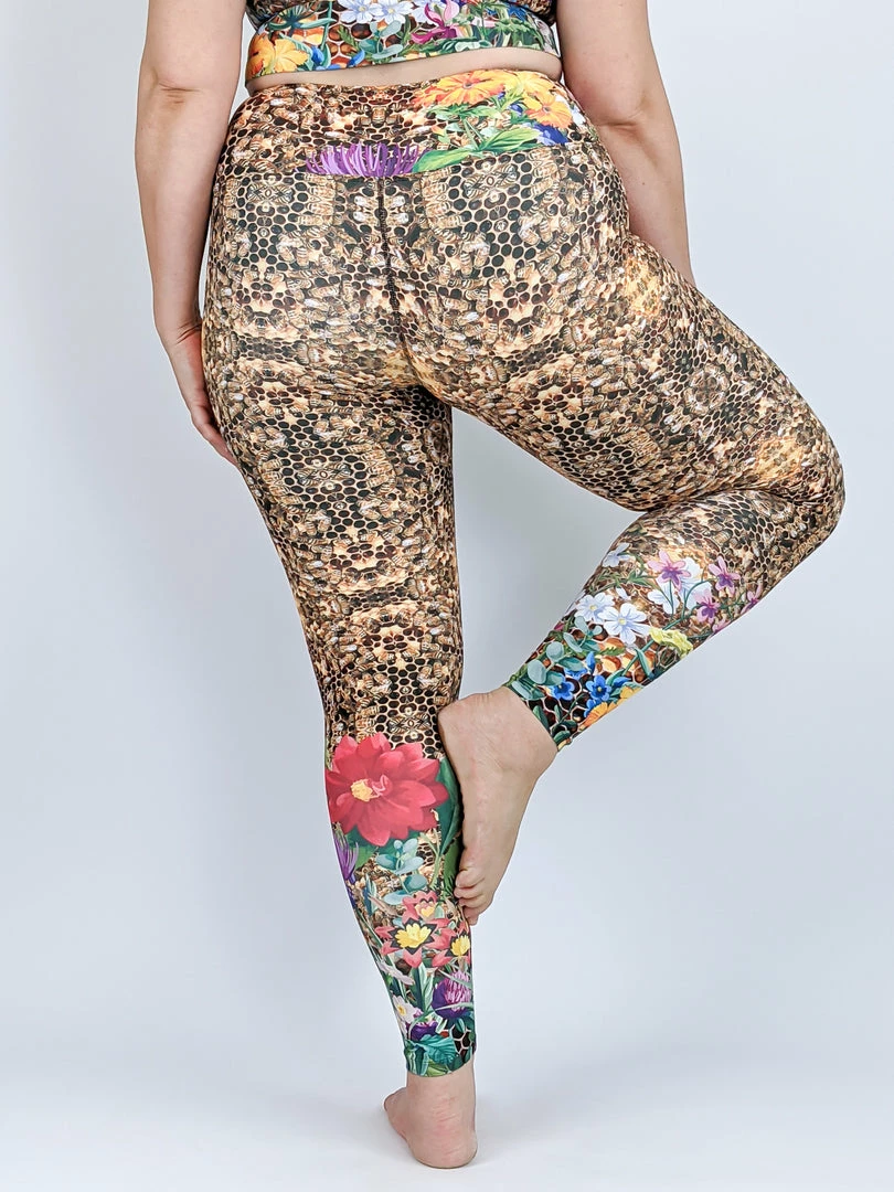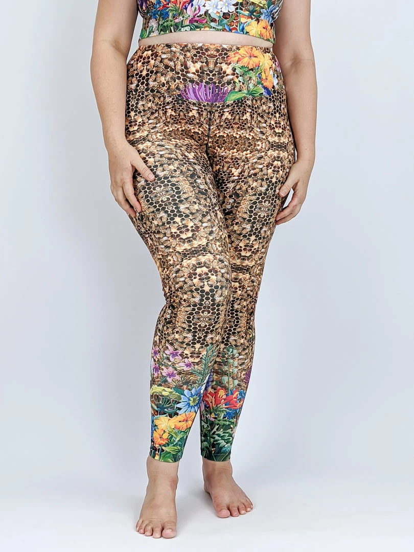 This print features busy bees and honeycomb and is our homage to this wonderful little creature. These leggings are so sweet and delicious! Pair them with your favourite boots or heels for a more fashion look. xxoo