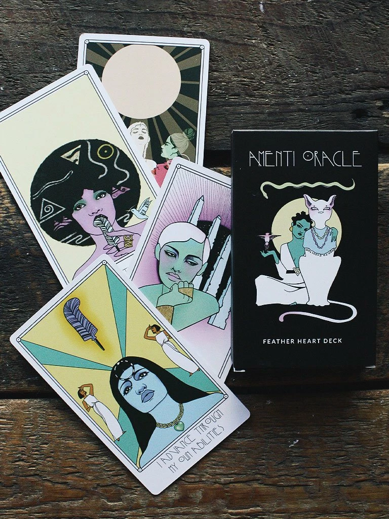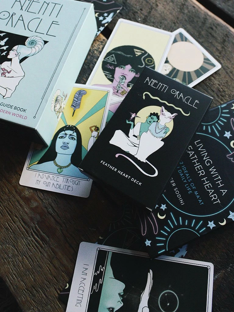 Beautifully designed oracle cards feature 42 unique illustrations alongside timeless wisdom, including “I Am Humble” and “I Embrace the All,” providing inspiring guidance for modern-day soul-seekers. The accompanying illustrated guide book delves deeper into the meaning of the cards, as well as practical applications of Ma’at’s teachings, advice on intuitive card readings, and sample spreads to spark the imagination.