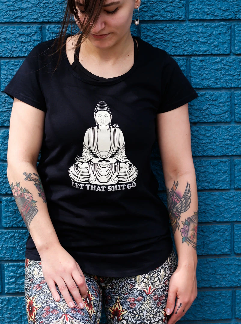 Our famous Buddha Says design is gaining quite the following. Join the movement and keep letting that Shit GO, Sisters!