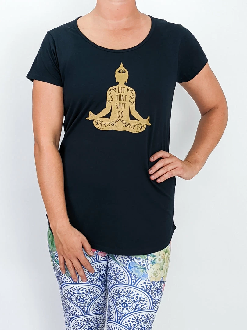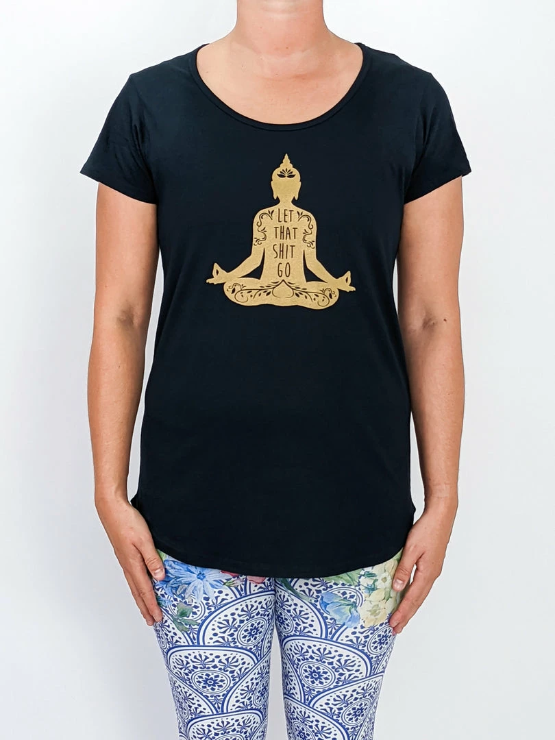 Our famous Buddha Says design is gaining quite the following. Join the movement and keep letting that Shit GO, Sisters!Β