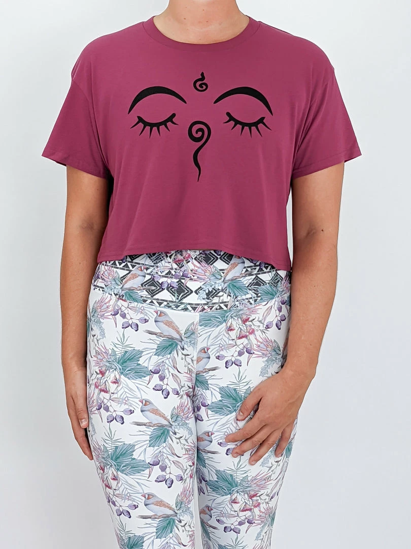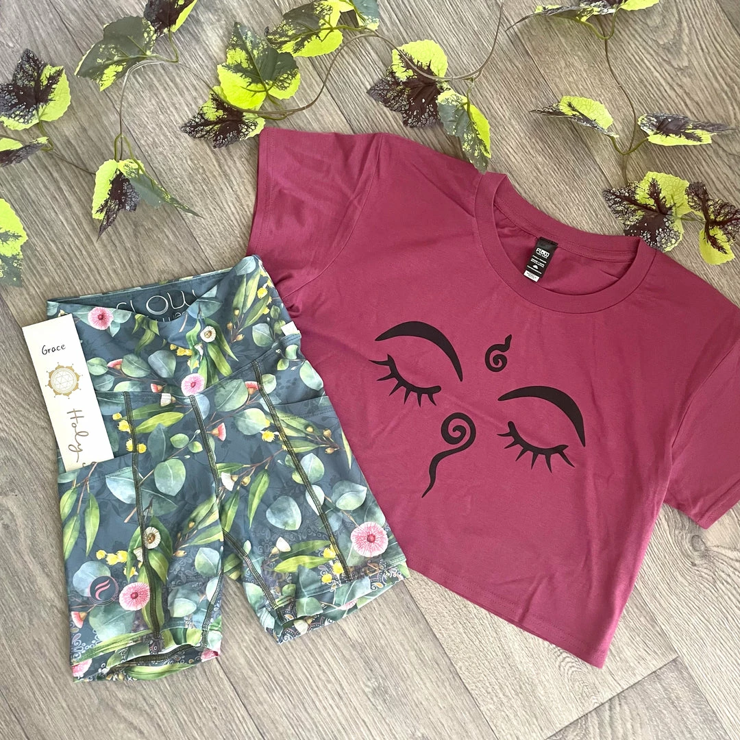 Say hello to our new berry-coloured crop tee. Pair this cutey-patootie with our leggings orΒ style with a skirt for a spring boho look xxooΒ