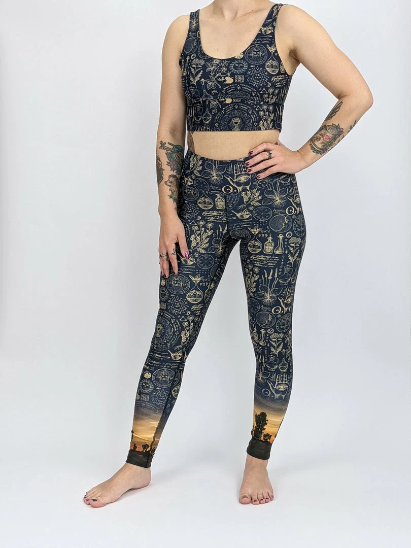 Take a journey into the healing wisdom of plants with our Bush Medicine design. Featuring Sacred Gold details on a deep blue background with an outback sunrise to grace your lower legs! xx