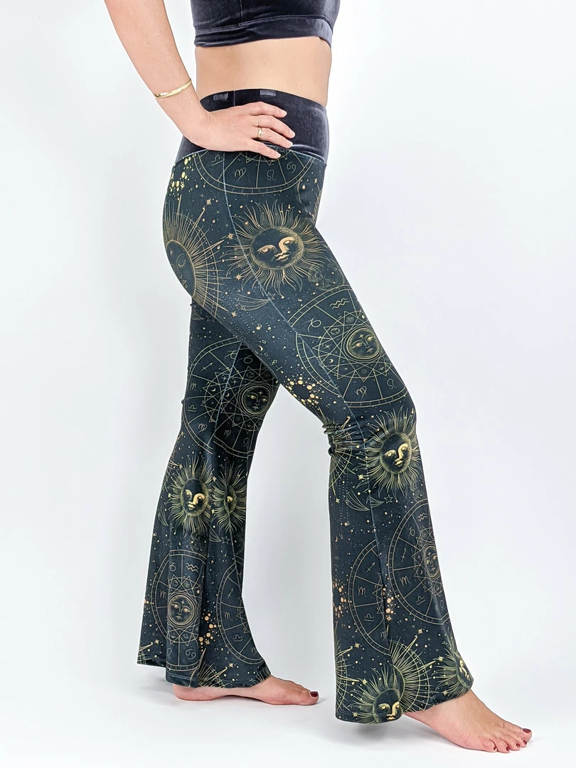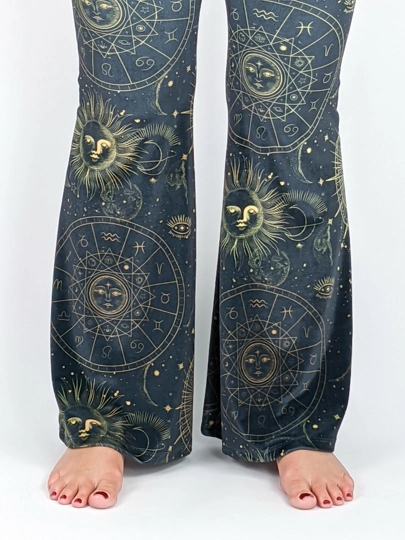 These fabulous, stretch velvet flares are not only lusciously flattering but will make you feel like a true Boho goddess! Featuring a legging style fit through the thigh with a dramatic knee break for a classic flared silhouette, these velvet beauties will have you feeling cosy and sassy in no time. Pair with heels or wedges for a Bohemian Glam look and don’t be afraid to up-size for added length and bell-bottom fabulousness!