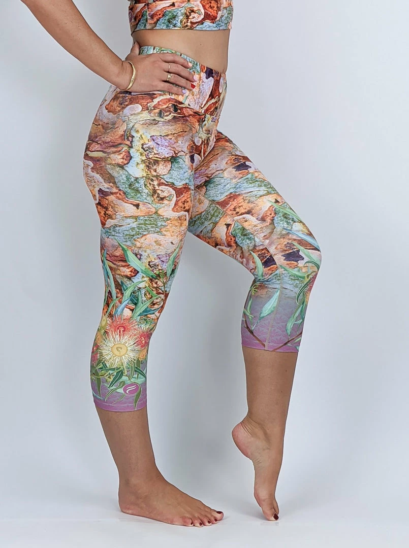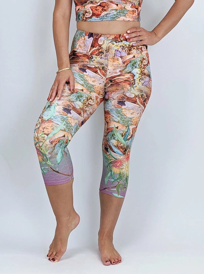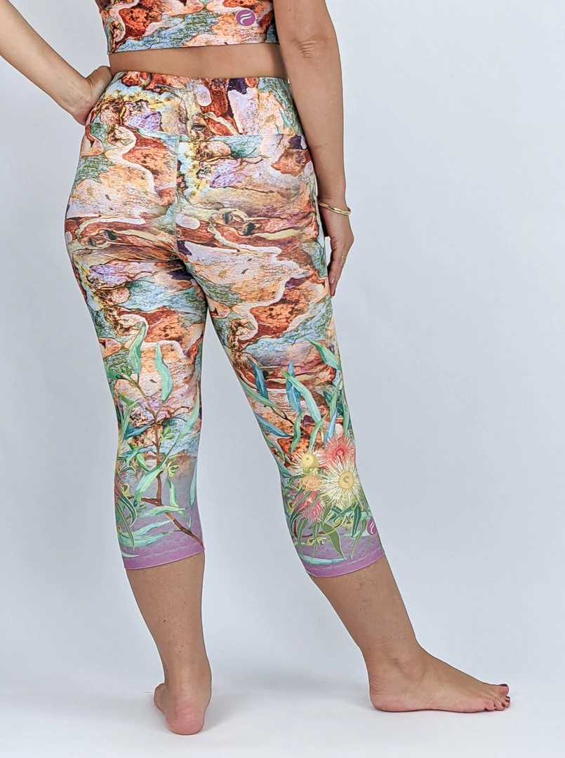 This sassy Australian-style Camo design features the colourful bark of the Rainbow Eucalyptus tree, with lower leg detail of gum blossoms amidst a splash of fuschia xxoo