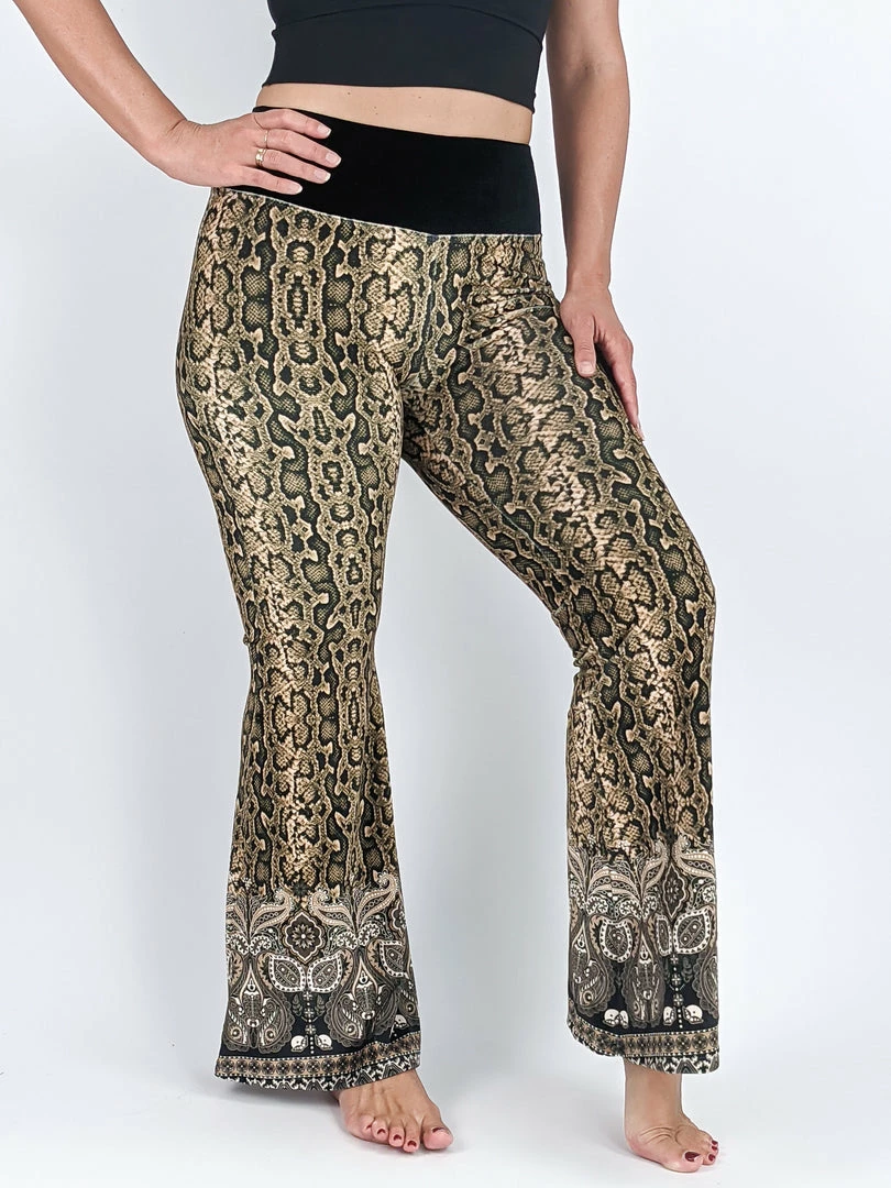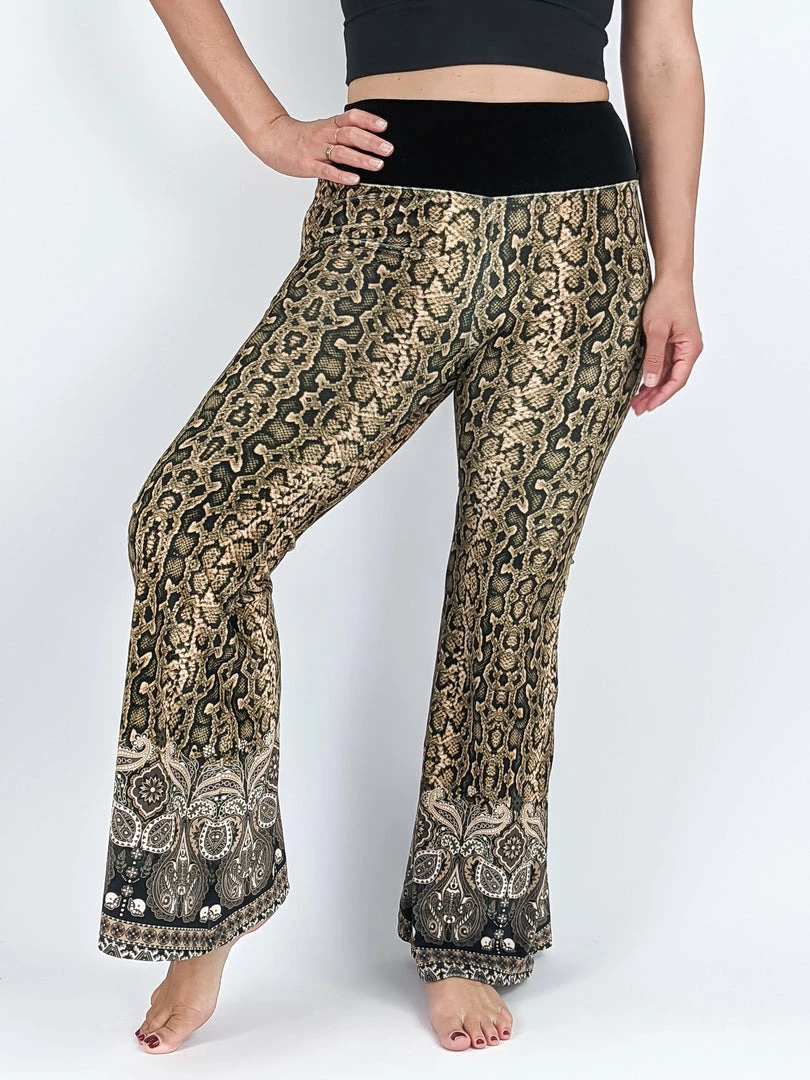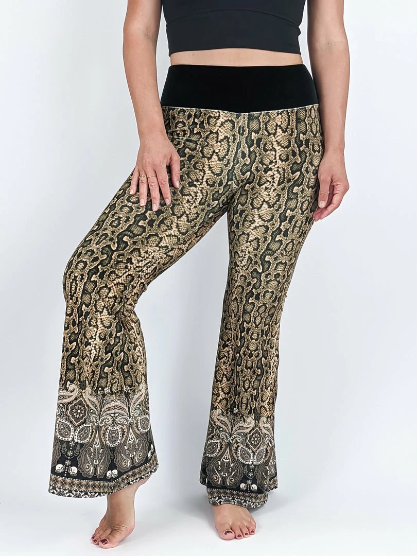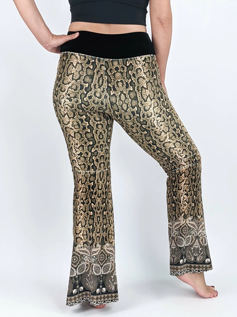 These fabulous, stretch velvet flares are not only lusciously flattering but will make you feel like a true Boho goddess! Featuring a legging style fit through the thigh with a dramatic knee break for a classic flared silhouette, these velvet beauties will have you feeling cosy and sassy in no time. Pair with heels or wedges for a Bohemian Glam look.