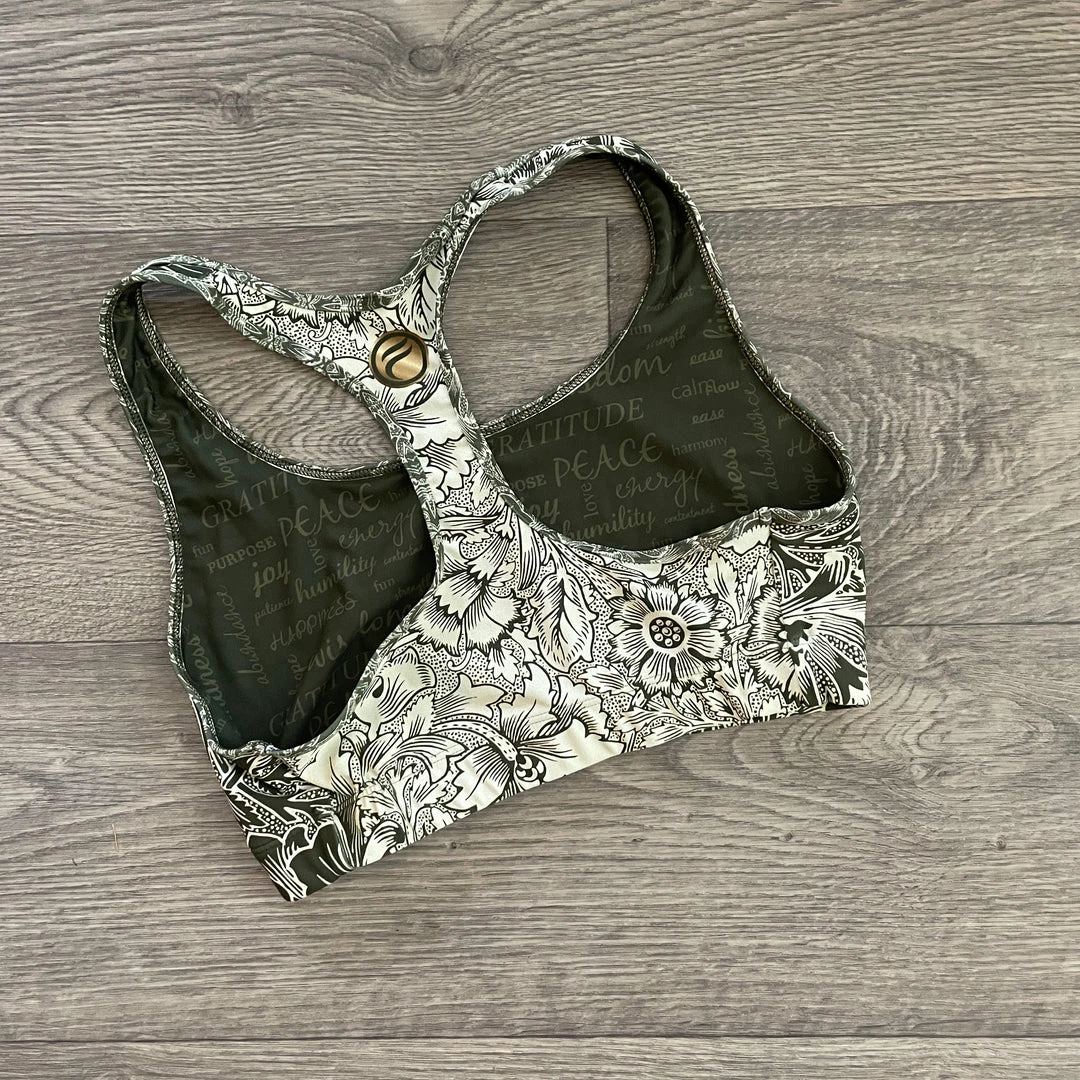 Flow Yoga Wear Folk Olive M 12-14 Racer Crop Top Racer Crops