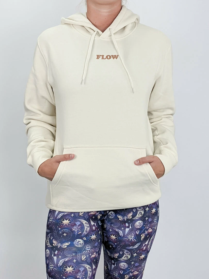 Meet our new Flow creation! Move, Flow and Glow through your dayΒ in cosy, fashion-forward style with our Mid weight cream coloured Hoodie. This layering piece featuresΒ aΒ front and backΒ graphic with comfortable hood, drawcord adjustment and front kangaroo pocket.