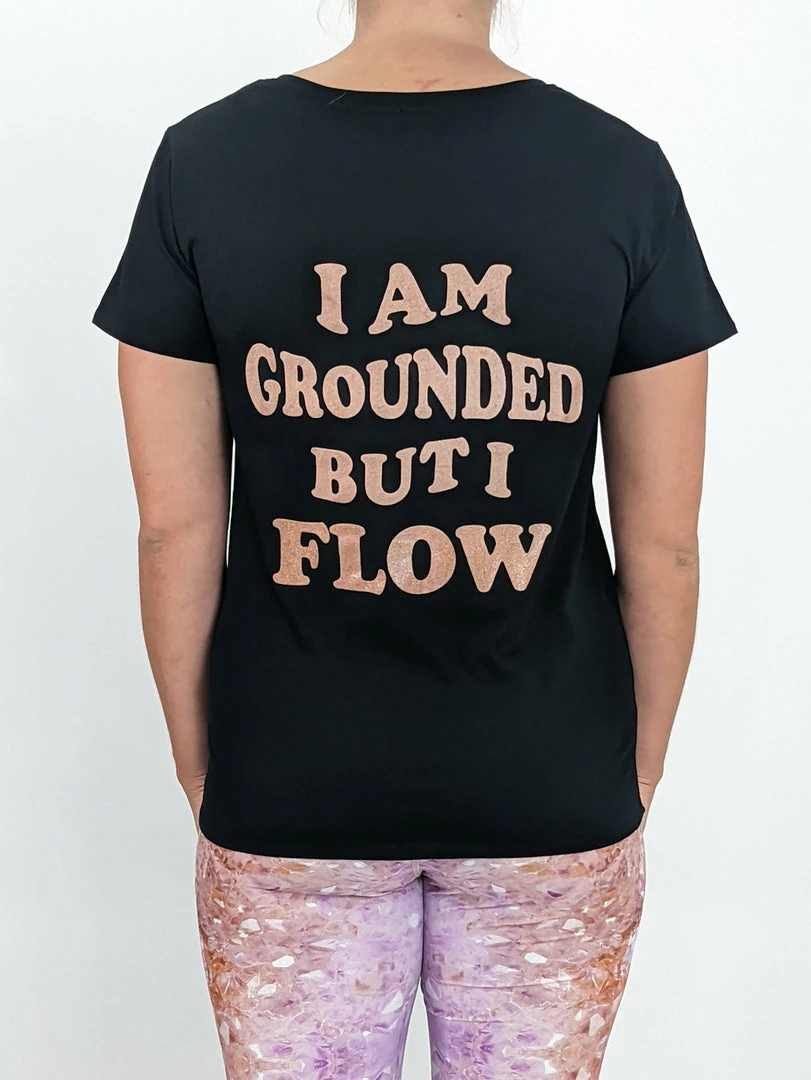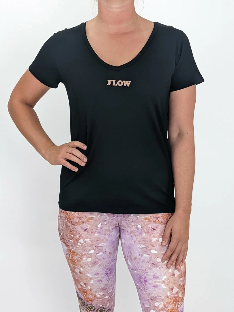 Meet our new V-neck tee and our new gorgeous grounded graphic! This black coloured v-neck style features capped sleeves and a looser relaxed fit. Pair them with our leggings or add to your wardrobe as a go-to piece. xxoo