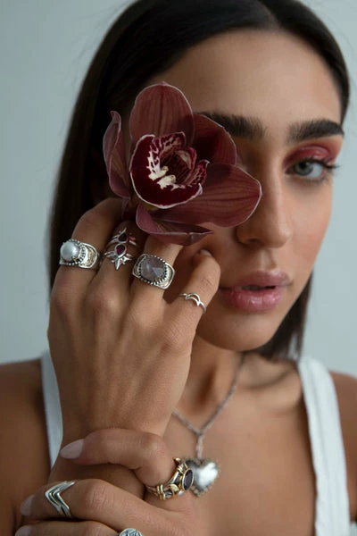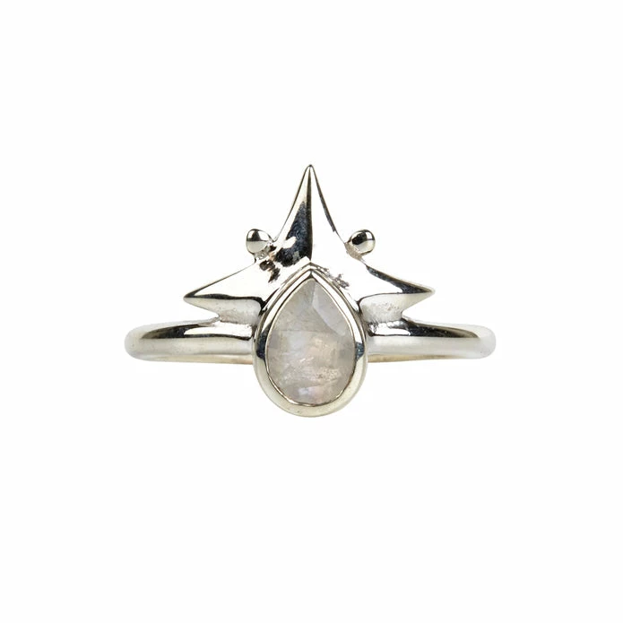 A beautiful Sterling Silver ring with a gorgeous rainbow Moonstone designed to pick up the deep hues of purple within this magical stone.