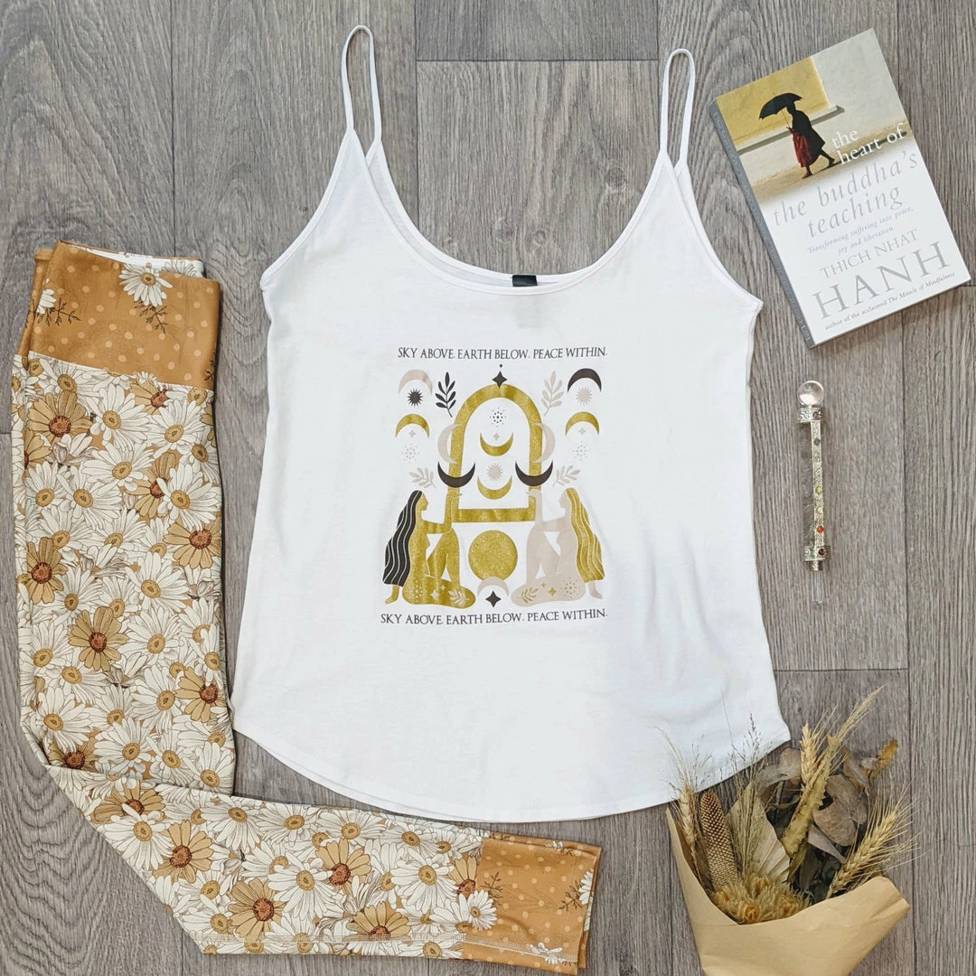 Spread a little peace wherever you go in this new string singlet style. Perfect for summer days, team with our leggings or boho skirt for an everyday look. xxoo