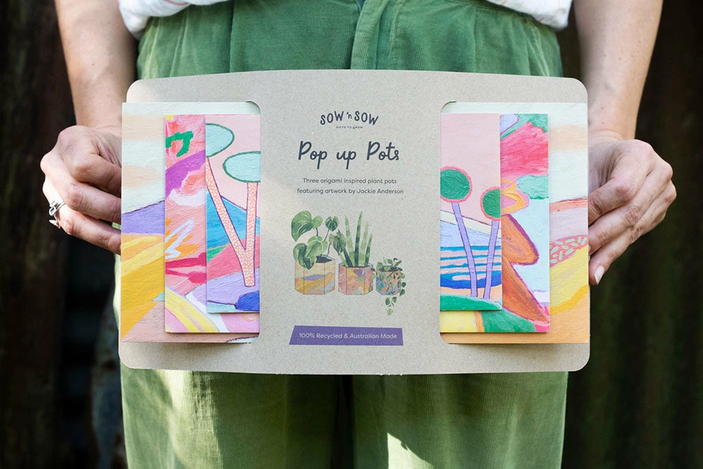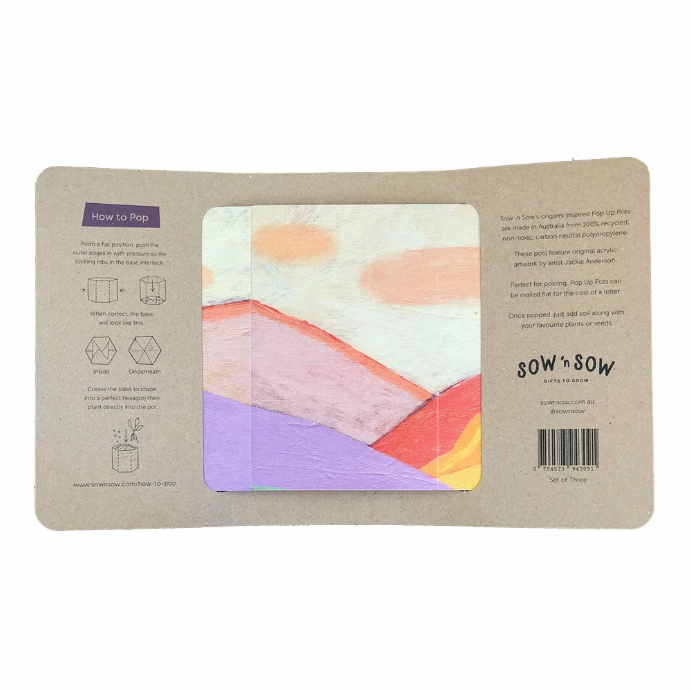 This pack includes one of each of our three Sow ‘n Sow X Jackie Anderson Pop Up Pots.