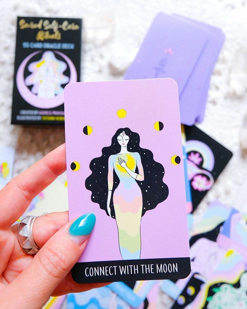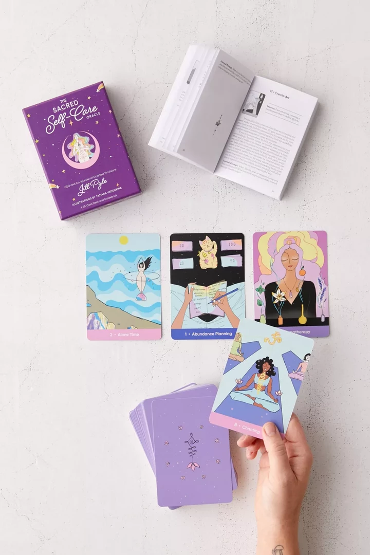 Connect with your intuition and deepen your self-care practice with The Sacred Self-Care Oracle. This whimsically illustrated deck will help you create rituals to nourish you on the deepest levels your soul is calling for, inviting you to ask: What do I need to feel centered and balanced today? How can I connect with my body’s intuition? If I only have a short time for me this week, how should I spend it?