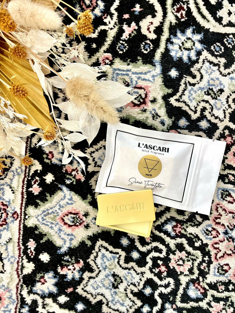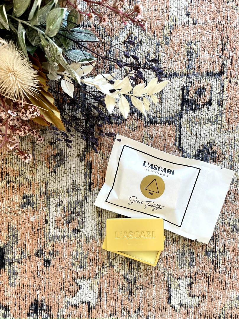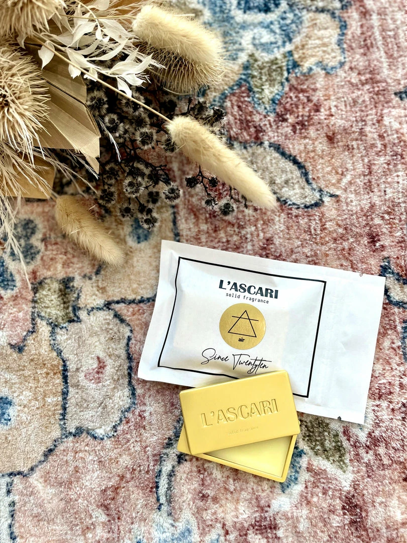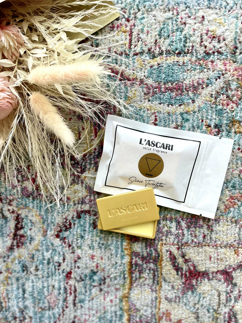 L’ASCARI unisex solid fragrances are for everyone, designed to take with you everywhere! The formula of ingredients nourishes and moisturizes your skin at the same time making you smell amazing!