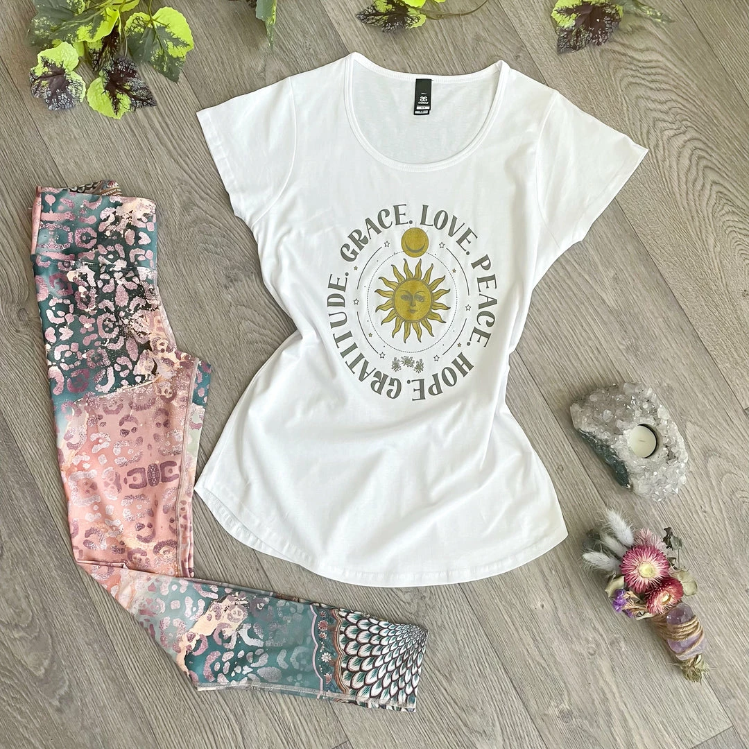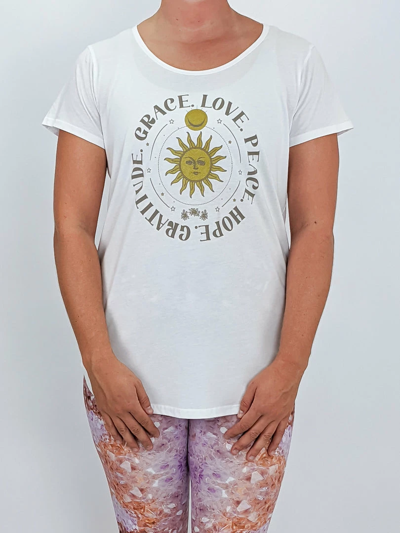 Our newestΒ Scoop Tee has landed. Bring a little Sunshine into your life with our happy, Sunny Tee. This cotton tee style featuresΒ a scoop neck & aΒ longer, curvedΒ fit. xxoo