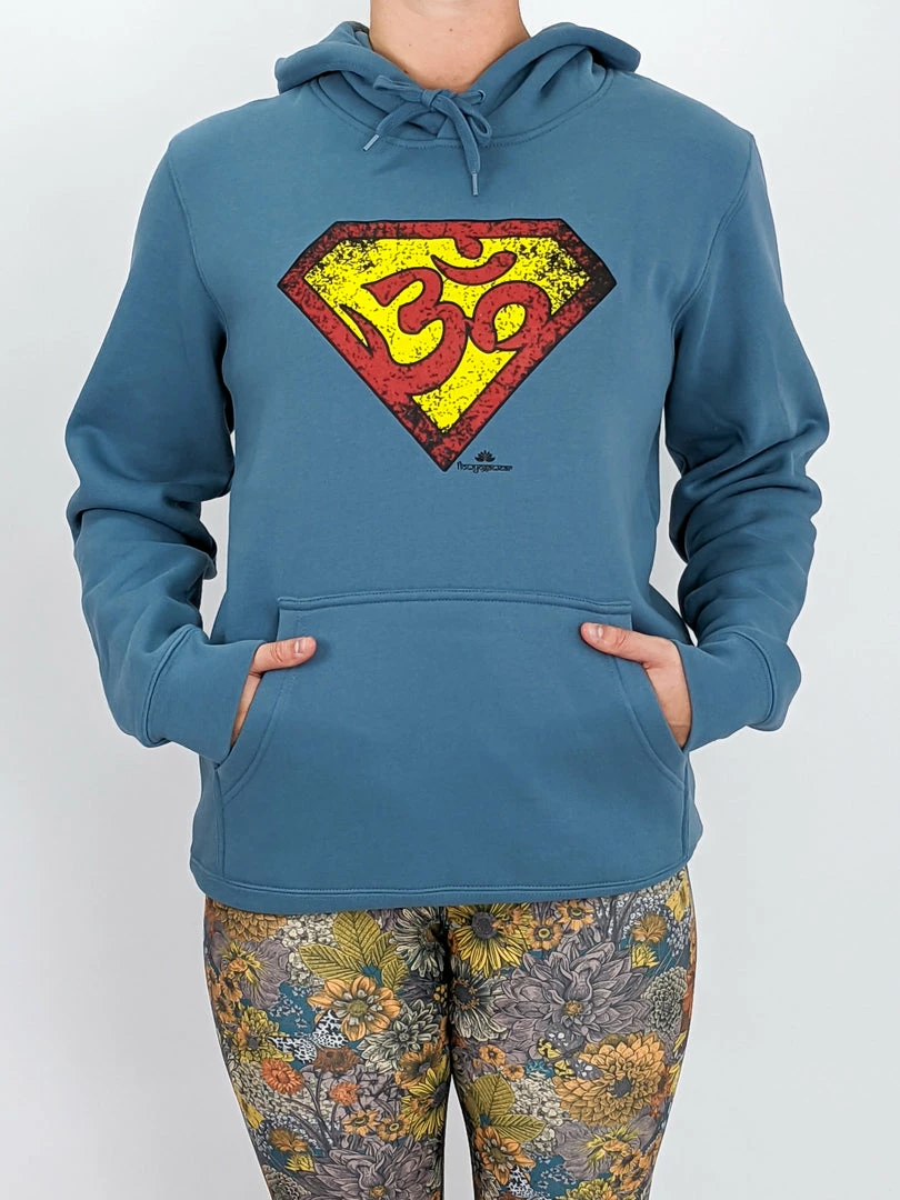 Yep, our snuggly unisex Super Yogi Hoodie is here, inspiring us all to become the Super Heroes we really are! This layering piece features our fun Super Yogi Graphic with comfortable hood, drawcord adjustment and front kangaroo pocket.