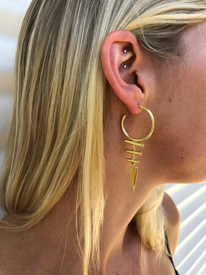 The end piece of these earrings symbolises a spear head, which is known for protection. Wear these earrings and realise your inner warrior goddess.