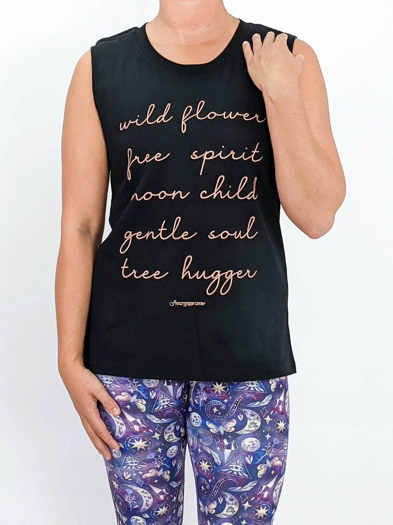 Our lovely Wildflower tank has arrived in a new copper graphic! Featuring high armholes and a shorter length than our unisex tank. A perfect pairing with so many of our gorgeous Flow leggings xxoo