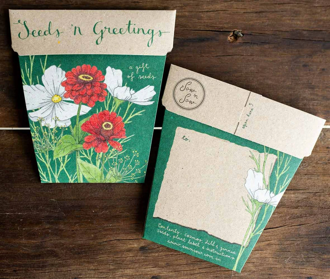 Featuring original illustrations by Melbourne artist Daniella Germain, these lovely Gift of Seed Cards are designed and made in Queensland, Australia, printed on 100% post-consumer waste recycled card and plastic-free.