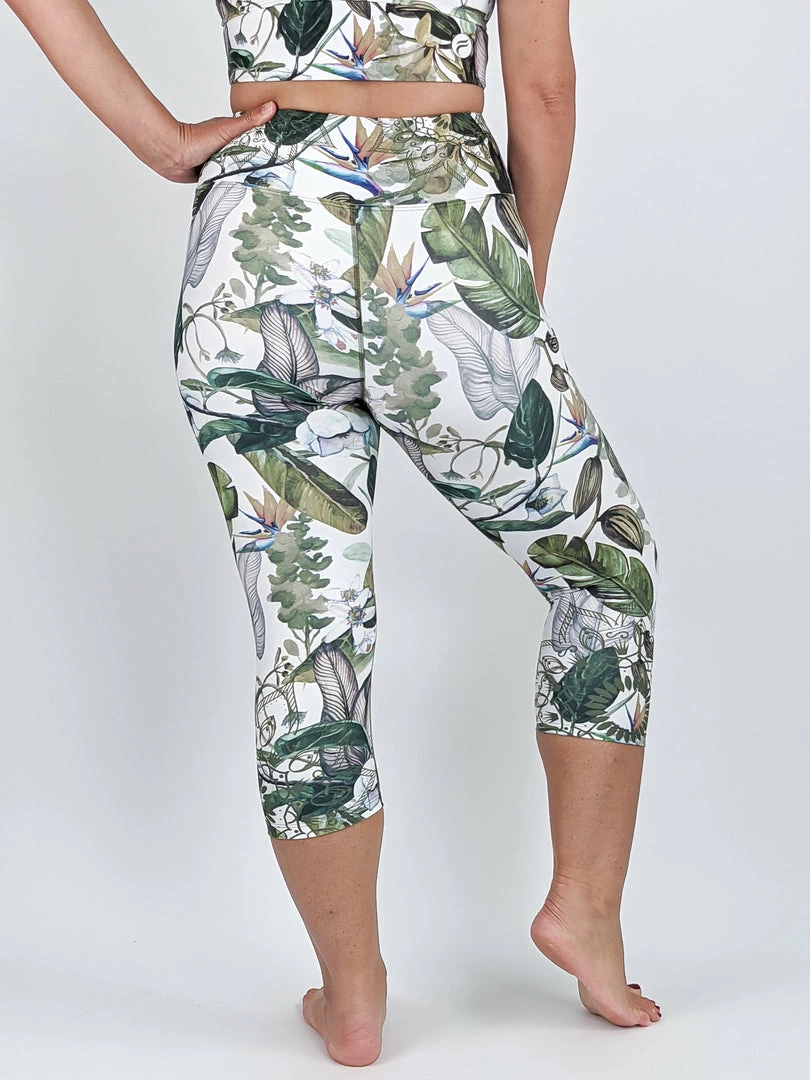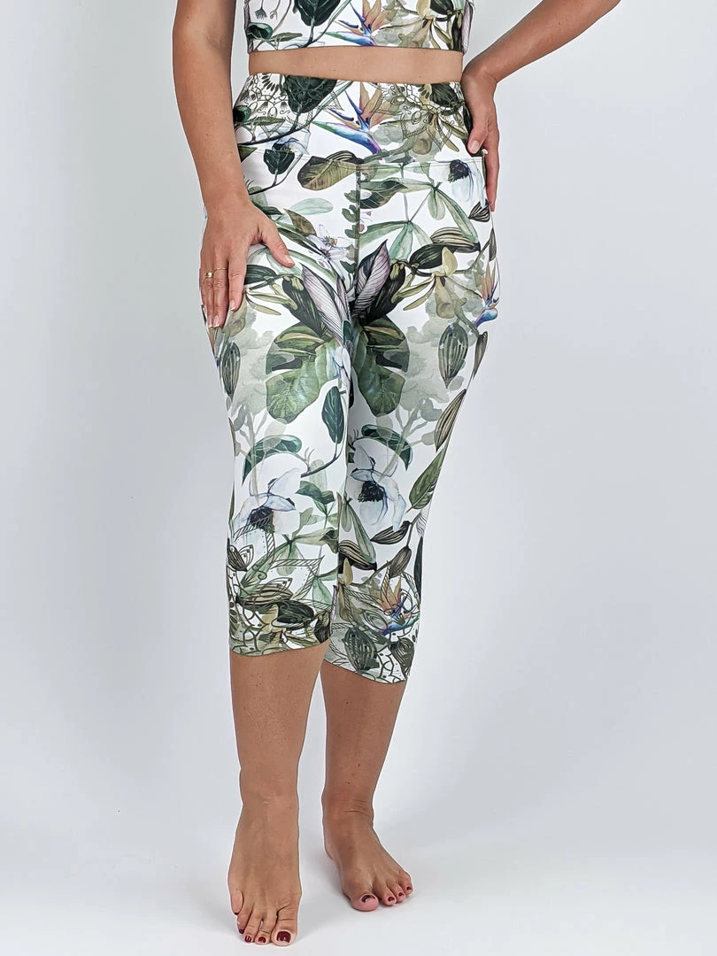 Sherri wears our high-waist pure capri length legging in size MED 12-14.