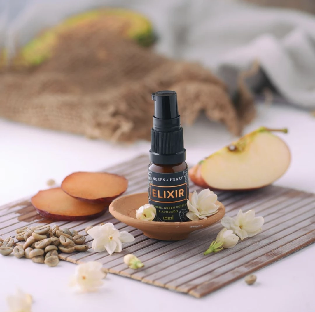 The Herbs & Heart ‘Elixir’ is a real treat for your skin. A light serum designed to rescue dull, stressed skin, Elixir is the perfect go-to when your skin is in need of an extra pampering. It’s light texture glides on smoothly and melts into your skin. With light reflecting gold particles and a supple matte finish, Elixir is also a perfect under make up primer.